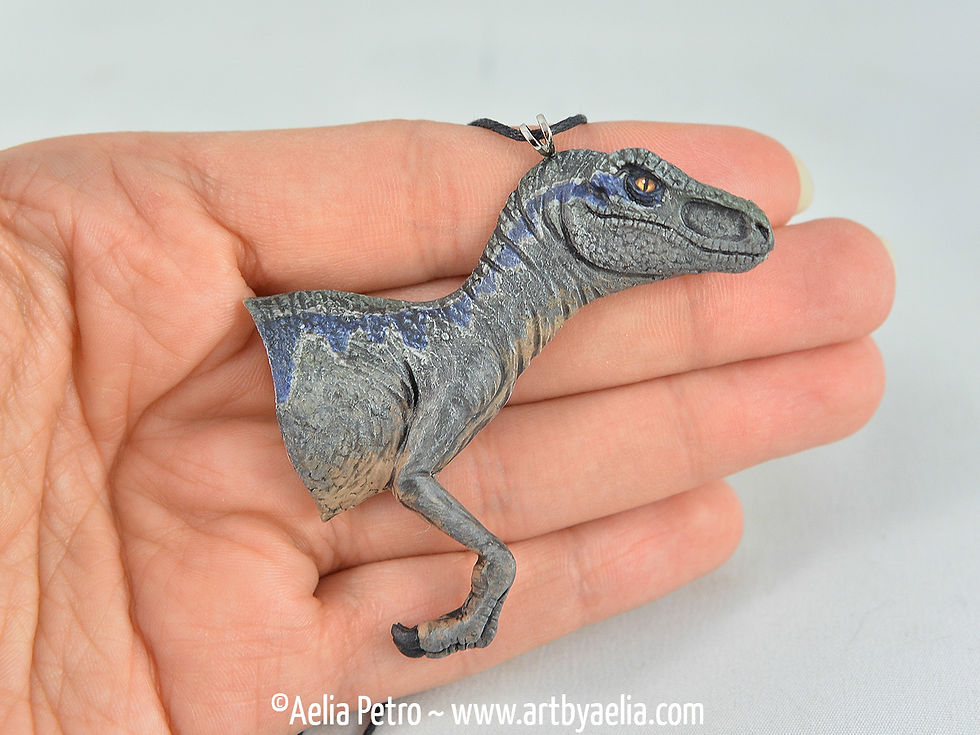 Blue Velociraptor Dinosaur Portrait Necklace - PRE-ORDER