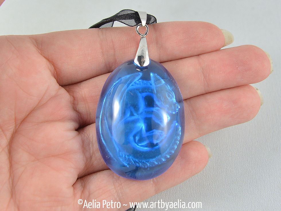 Blue Dragon Glass Necklace - Dragon Intaglio Pendant - In Stock and Ready to