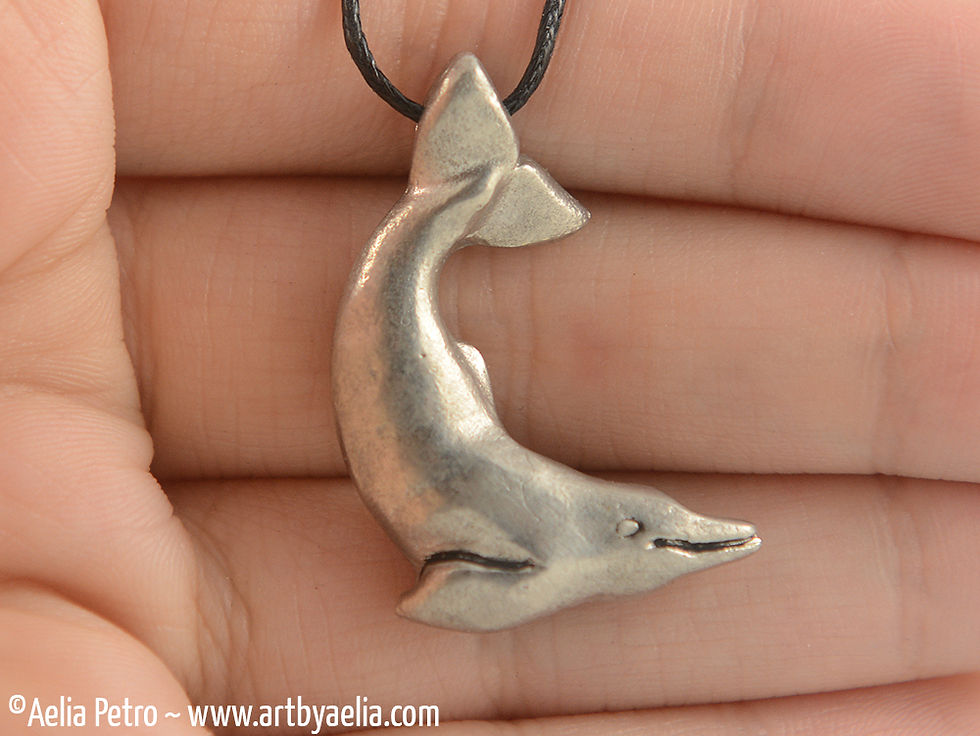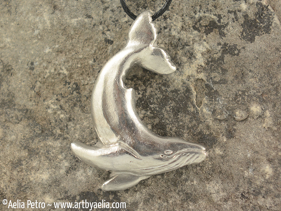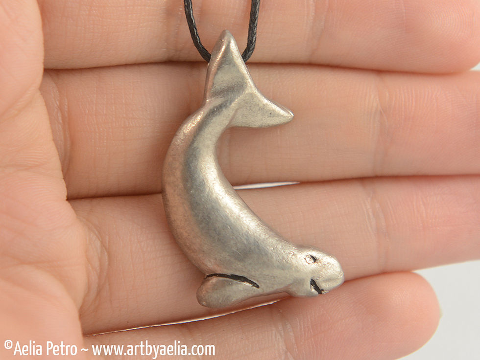 Pewter Diving Beluga Whale Mother and Calf Necklace